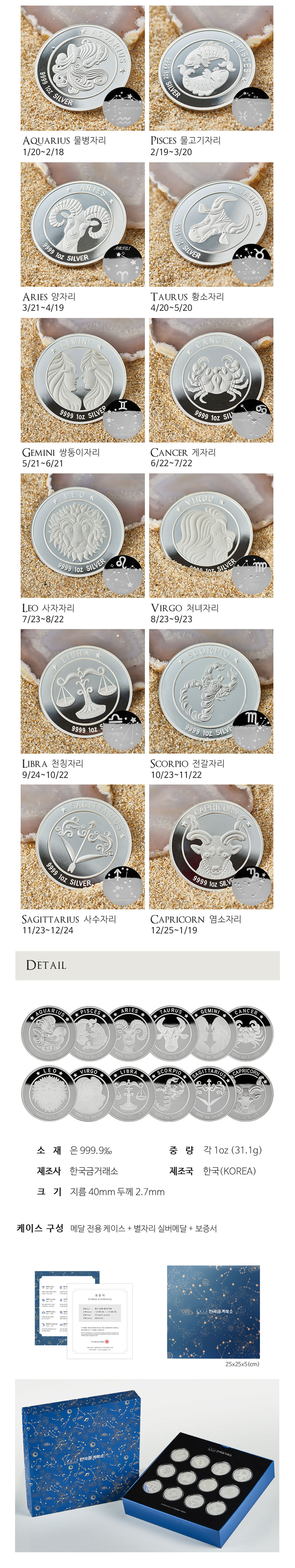 1온스 황도 12성좌 별자리 실버 불리온 메달 세트